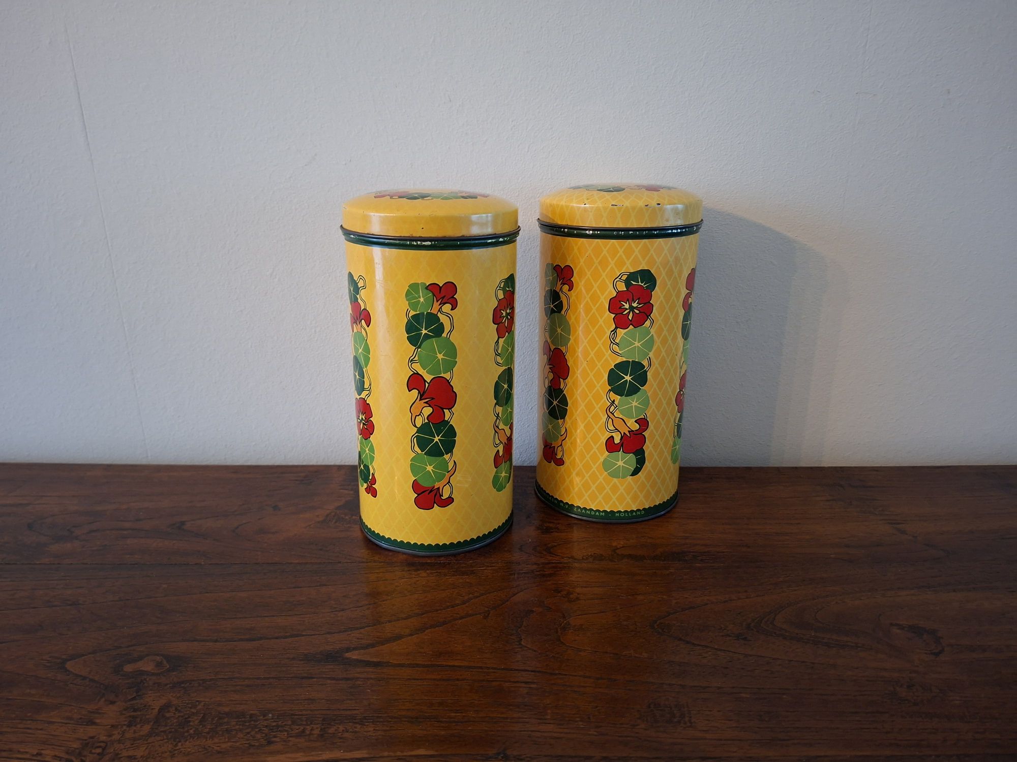 Jaren 60 beschuitbus met ontwerp van oost-Indische kers.